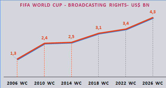 Coraz większe znaczenie mają także działania cyfrowe i aktywacje w mediach społecznościowych. Mistrzostwa świata w Rosji w 2022 roku odnotowały już wzrost o 32% w porównaniu z edycją z 2018 roku. Oczekuje się, że prawa do transmisji po raz pierwszy przekroczą 4,2 miliarda dolarów.