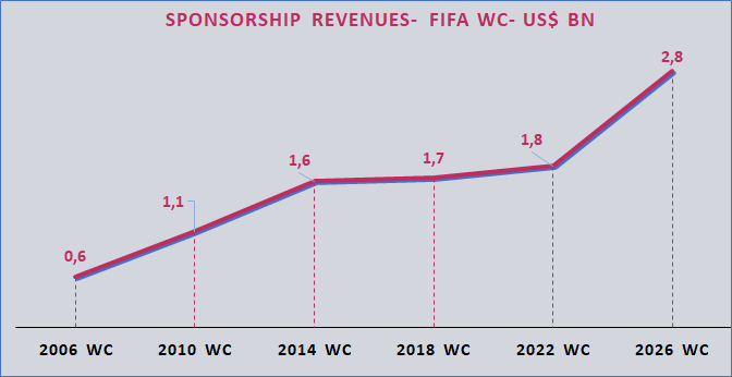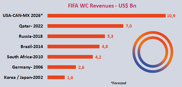Rozszerzony format mundialu, większa liczba drużyn i meczów oraz organizacja w trzech krajach (USA, Kanada, Meksyk) sprawiają, że wydarzenie ma jeszcze większy potencjał marketingowy niż dotychczas. Według danych przeanalizowanych przez Sports Value na podstawie raportów rocznych FIFA, całkowite przychody mają osiągnąć 10,9 mld dolarów w 2026 r., co stanowi wzrost o 56% w porównaniu z MŚ 2022 w Katarze, które wygenerowały 7 mld dolarów.