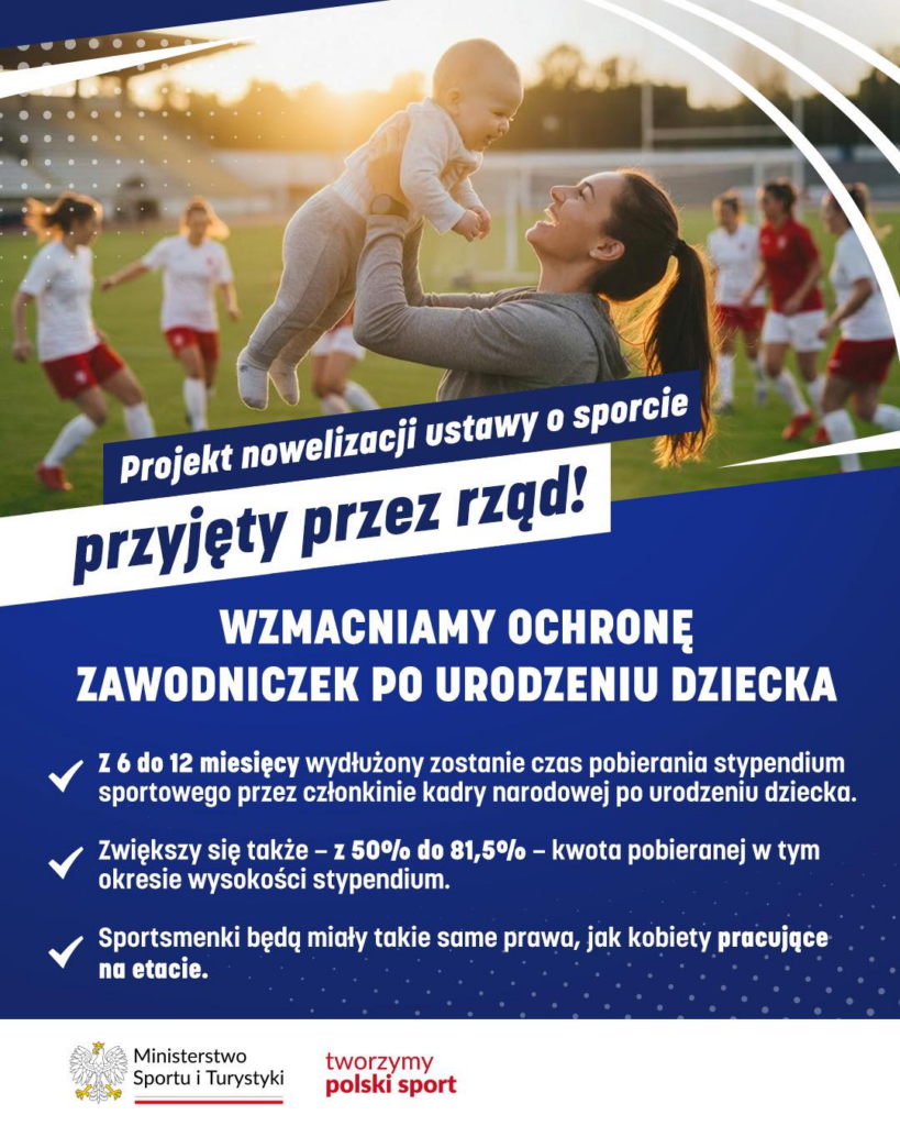 Jednym z kluczowych elementów projektu jest wzmocnienie ochrony zawodniczek – matek. Szereg planowanych rozwiązań odpowiada na realne problemy zawodniczek, które bez wsparcia finansowego często muszą rezygnować z kontynuowania kariery sportowej ze względów rodzinnych. Ponadto zwiększa to atrakcyjność i sprawiedliwość systemu stypendialnego oraz dopasowuje polskie prawo do standardów społecznych i europejskich.