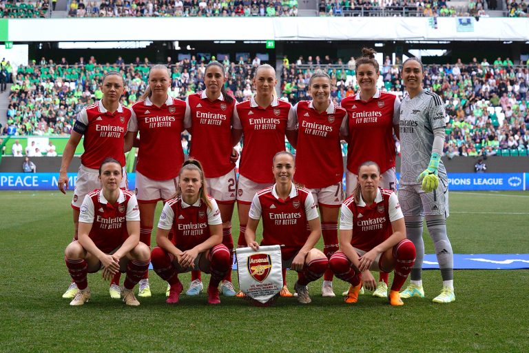 Wolfsburg, Germany, April 23rd 2023: Arsenal FC before the UEFA Womens Champions League quarterfinal football match between VFL Wolfsburg and Arsenal FC at Volkswagen Arena in Wolfsburg, Germany.  (Julia Kneissl / SPP) (Photo by Julia Kneissl / SPP/Sipa USA)