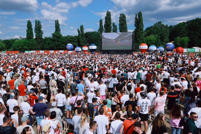 Kibice licznie zgromadzili się w strefie kibica na błoniach PGE Narodowego na mecz z Holandią.