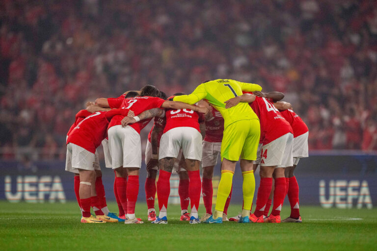 Benfica huddle during the UEFA Champions League 2024/25 football match between SL Benfica and Atletico Madrid at Estádio da Luz in Lisbon, Portugal  (Pedro Loureiro/SPP) (Photo by Pedro Loureiro/SPP/Sipa USA)