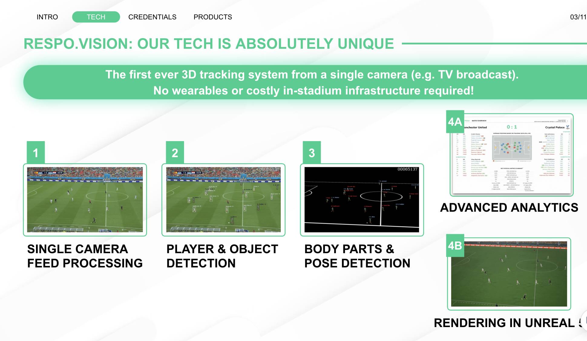 – Mamy zróżnicowaną ofertę dla klientów sportowych i medialnych. Jeżeli chodzi o sportowych, to oferujemy dostęp do danych, które są niemożliwe do zebrania za pomocą narzędzi ludzkich. A tak do tej pory były zbierane dane analityczne. Ktoś sobie siedzi, ogląda mecz, pisze, notuje. Piątka podała do dziewiątki, zagranie udane. Natomiast jest szereg rzeczy na tak zwanym głębszym poziomie, których człowiek nie zaznaczy, typu jak szybko biegł dany zawodnik czy zawodniczka, albo jak intensywny był pressing, albo jakie były odległości pomiędzy formacjami. Do tych danych, żeby coś takiego zacząć analizować, w ogóle mieć dostęp, należy używać systemów lepszych niż ludzkie. Czasem można to robić sensorami – na przykład za pomocą kamizelek. Natomiast sensory dają dane tylko na temat swojej drużyny. Nikt nie będzie miał dostępu do danych przeciwnej drużyny, bo rywal się na to nie zgodzi. Więc jeżeli chce się zrozumieć cokolwiek takiego „głębszego” na temat przeciwnika, to pozostają systemy optyczne, czyli takie, jak produkuje ReSpoVision. One na podstawie obrazu wyciągają dane, zliczają sprinty, maksymalne prędkości, odległość między formacjami itd. Te wszystkie dane, które w dużym uproszczeniu nazywa się danymi trackingowymi, w przeciwieństwie do danych eventowych, które mogą być zbierane ręcznie.