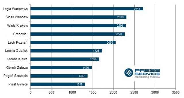 Marcowy ranking medialności klubów PKO BP Ekstraklasy nie przyniósł większych zmian. Po raz kolejny najlepsza była Legia Warszawa.