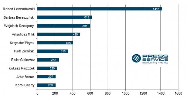 Za jej plecami znalazła się czwórka zespołów, która wyraźnie odskoczyła reszcie. Wśród polskich piłkarzy będących zawodnikami klubów w pięciu najsilniejszych europejskich ligach ponownie liderem okazał się Robert Lewandowski, ale już za jego plecami doszło do zmian – wynika z analizy PRESS-SERVICE Monitoring Mediów.