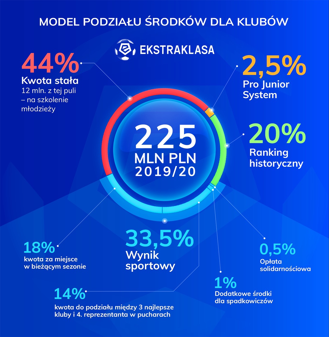 Od sezonu 2019/2020 środki przekazywane klubom z Ekstraklasy z tytułu scentralizowanych praw mediowych i marketingowych dzielone są wg nowych zasad podziału.