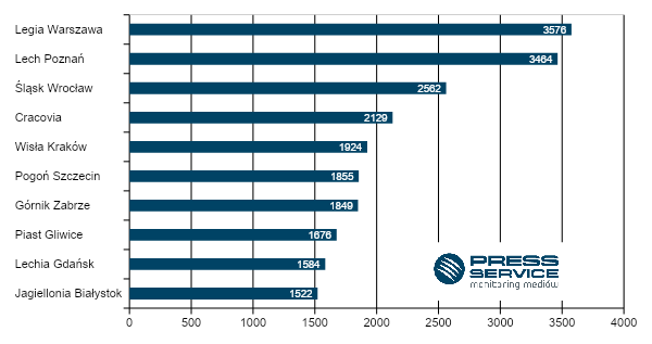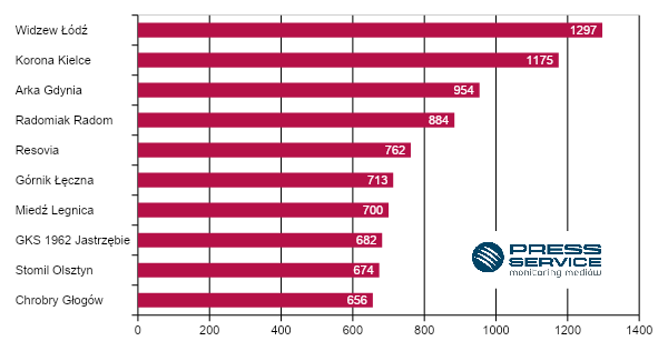 Firma PRESS-SERVICE Monitoring Mediów zaprezentowała kolejny raport "Piłka w grze". Tym razem porównała liczbę publikacji na temat klubów PKO Ekstraklasy, Fortuna 1. Ligi oraz poszczególnych piłkarzy. Najlepsi w swoich kategoriach okazali się odpowiednio Legia Warszawa, Widzew Łódź oraz Robert Lewandowski.
