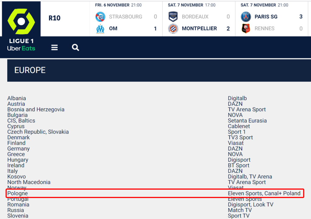 Na oficjalnej stronie piłkarskiej Ligue 1 Uber Eats w zakładce z międzynarodowymi nadawcami rozgrywek pojawiła się adnotacja dla Polski. Według niej prawa do pokazywania ligi zostały sprzedane.