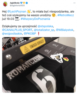 Co ciekawe, do akcji przyłączyła się również Jagiellonia. Na social mediach Dumy Podlasia klub ostatnio pochwalił się tym, że właśnie na 19 marca planuje wystąpić w specjalnych strojach, w których zagrają piłkarze Jagi.