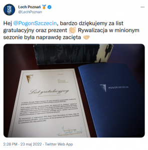 Pogoń Szczecin wysłała list gratulacyjny Lechowi Poznań