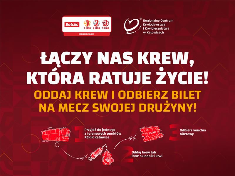 Od marca do czerwca 2025 roku dla osób, które oddadzą krew w Regionalnym Centrum Krwiodawstwa i Krwiolecznictwa w Katowicach lub wybranych Terenowych Oddziałach w województwie śląskim, RCKiK w Katowicach oraz Betclic przygotowali vouchery, które można wymienić na podwójny bilet na mecz piłki nożnej lokalnych klubów.
