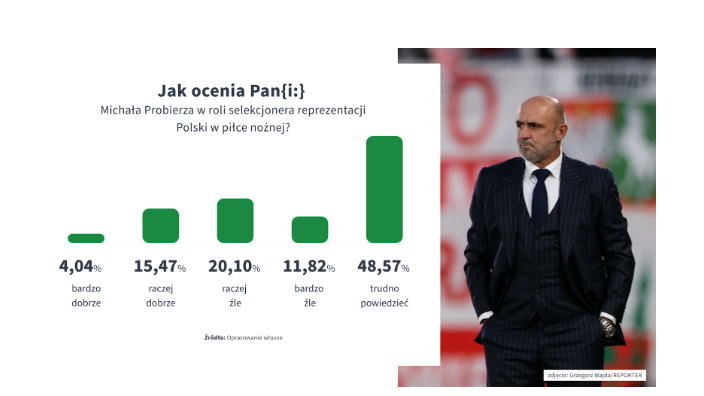 Trzeba w tym miejscu dodać, że kibice na ostatniej prostej przygody Probierza z kadrą oceniali jego pracę negatywnie. Zaledwie 4% ankietowanych oceniało jego pracę bardzo dobrze, a 15,47% raczej dobrze. Faktem jest, że nie broniły go wyniki. W okresie jego pracy z kadrą od 20 września 2023 do 12 czerwca 2025 roku – zanotował 9 wygranych, 5 remisów i aż 7 porażek, przy bilansie bramkowym 34-29.