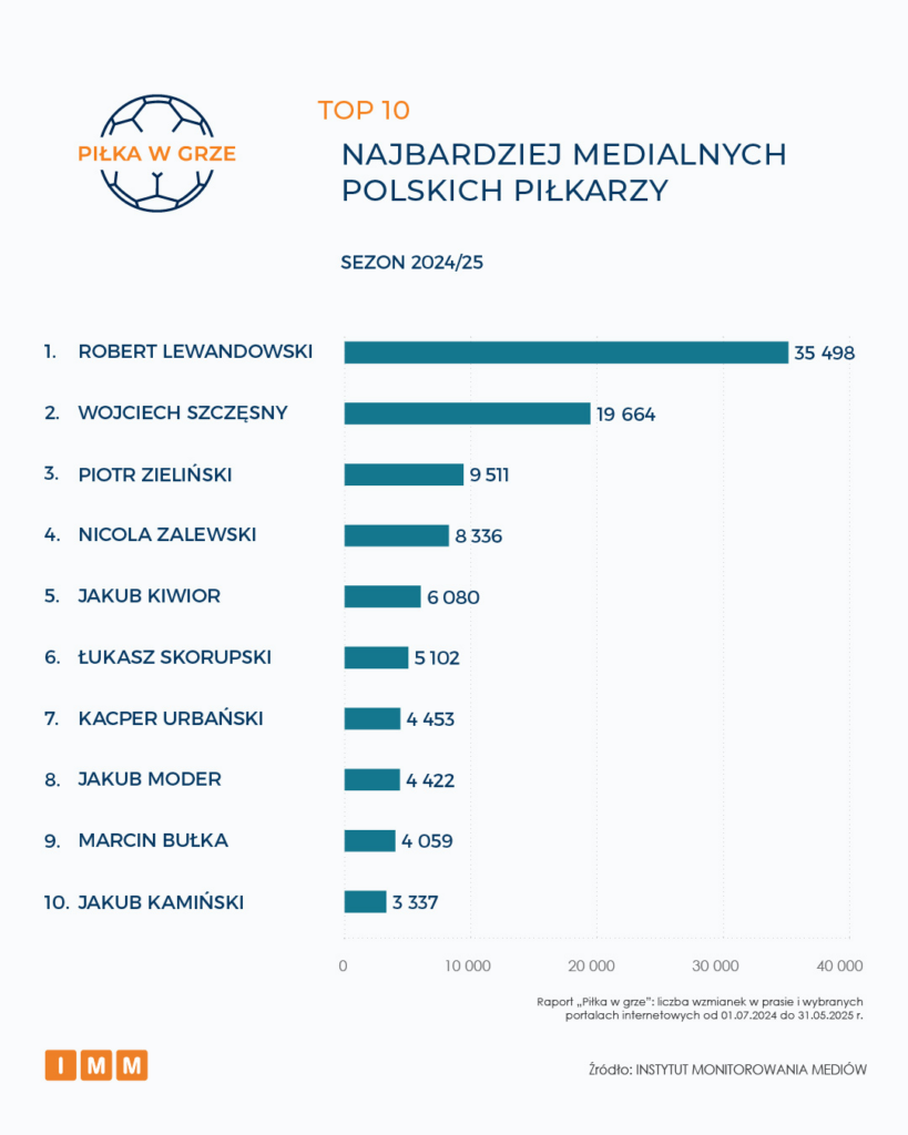 – Ten sezon pokazał, że sukcesy klubowe, ale i aktywność reprezentacyjna oraz wyrazistość poza boiskiem przekładają się na popularność w mediach. Szczęsny i Lewandowski to nie tylko sportowcy, ale i silne marki medialne – podsumowuje ekspert IMM.
