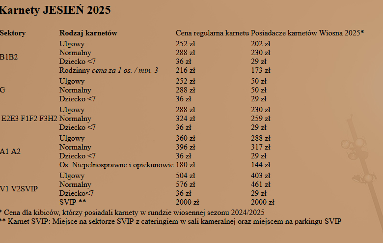 Ceny karnetów na sezon 2025/2026 na domowe mecze Radomiaka przedstawiają się następująco: