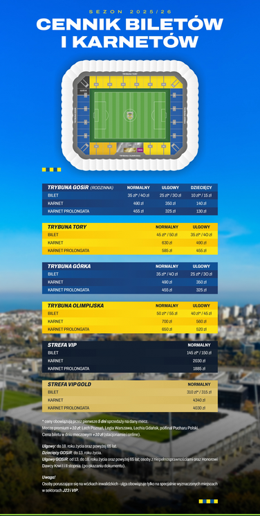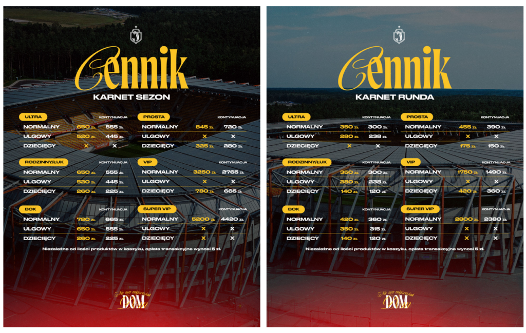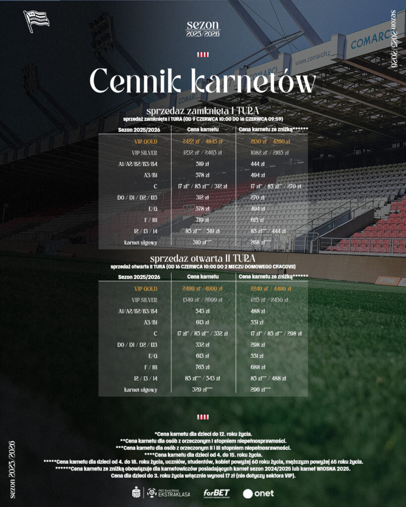 Klub z ulicy Kałuży ma świadomość, że kibice nie mogą doczekać się powrotu na stadion, pora więc ruszyć ze sprzedażą karnetów na sezon 2025/2026! Klub zaznaczył, że karnety można zakupić zarówno na cały sezon, obejmujący 17 ligowych spotkań, jak i na samą rundę jesienną, gdzie przewidzianych jest 9 meczów Pasów.