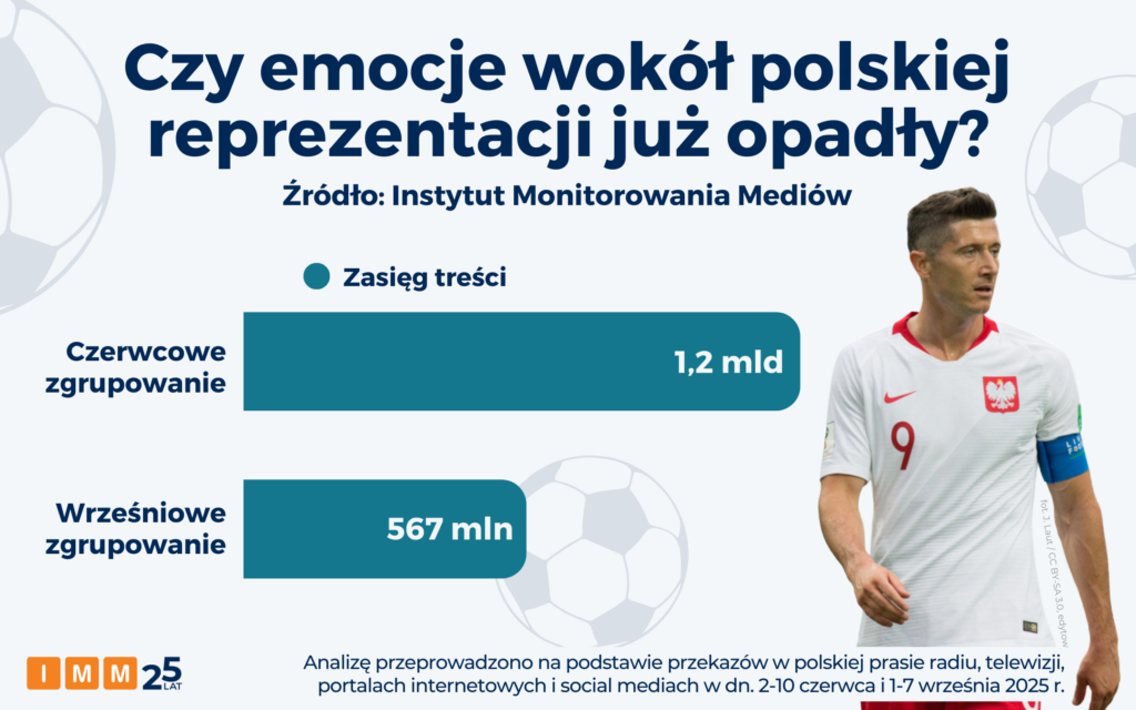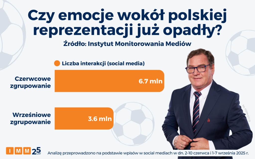 – Sport kocha emocje, a kontrowersje są jednym z najpotężniejszych paliw medialnych. Nawet jeśli wyniki są słabe, to właśnie one przyciągają uwagę opinii publicznej i napędzają dyskusję w social mediach. W czerwcu mieliśmy do czynienia z mieszanką sportowych rozczarowań i pozaboiskowych historii – od decyzji personalnych, przez zmianę opaski kapitańskiej, po publiczne wypowiedzi selekcjonera. To wszystko tworzyło dynamiczny, wręcz tabloidowy klimat, który przyciągał uwagę nawet tych osób, które na co dzień nie śledzą piłki nożnej. Wrześniowe zgrupowanie było bardziej stonowane i skupione na grze. Widać tu wyraźnie, że nie tylko wyniki sportowe, lecz konflikty, napięcia i wyraziste narracje i przyciągają masową uwagę nie tylko internautów, ale także dziennikarzy.