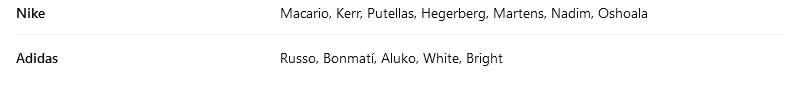 Alessia Russo (Anglia) ma umowę z Adidasem, Beats by Dre i Oakley; to pierwsza kobieta w WSL zarabiająca ponad 1 mln funtów rocznie. Aitana Bonmatí (Hiszpania, Barcelona) niedawno przeniosła się z Nike do Adidasa, otrzymując sygnowane Predatory i najdroższy kontrakt Adidas w kobiecym futbolu.